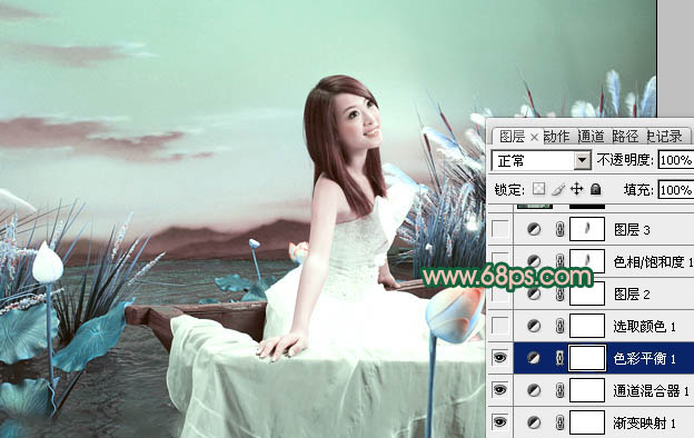 4、创建色彩平衡调整图层,对高光进行调整,参数设置如图7,效果如图8。