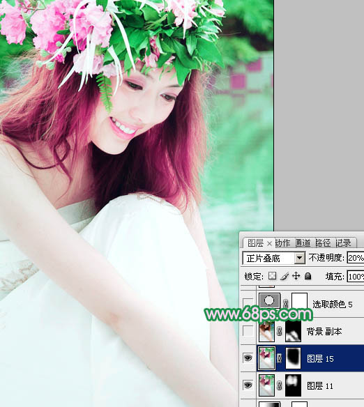 Photoshop调出外景人物图片柔美的绿紫色(10)