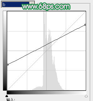 5、新建一个图层,按Ctrl + Alt + Shift + E 盖印图层。选择菜单:图像 > 模式 > Lab颜色,确定后按Ctrl + M 调整曲线,对b通道进行调整,参数设置如图13,效果如图14。