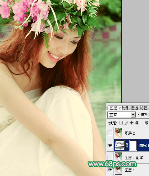 Photoshop调出外景人物图片柔美的绿紫色(5)