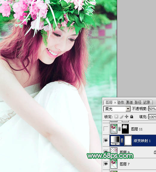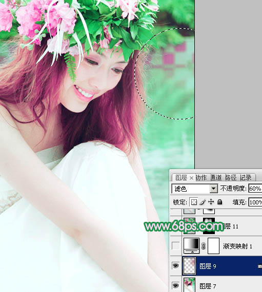 Photoshop调出外景人物图片柔美的绿紫色(9)