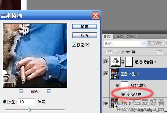 7、为什么要转换为智能对象呢?双击下图中的“高斯模糊”,这时候我们发现可以重新设定高斯模糊的值。