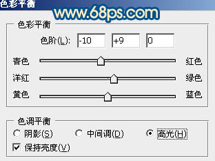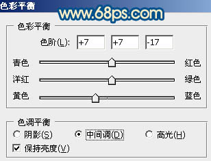 2、创建色彩平衡调整图层,对中间调及高光进行调整,参数设置如图2,3,效果如图4。