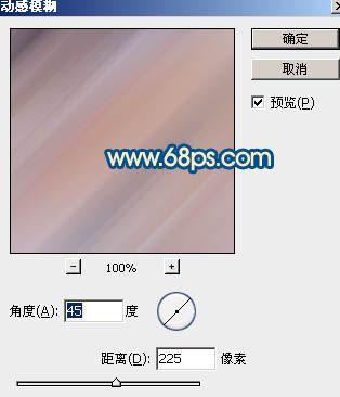 10、新建一个图层,盖印图层。执行:滤镜 > 模糊 > 动感模糊,参数设置如图23,确定后把图层混合模式改为“柔光”,不透明度改为:60%,效果如图24。