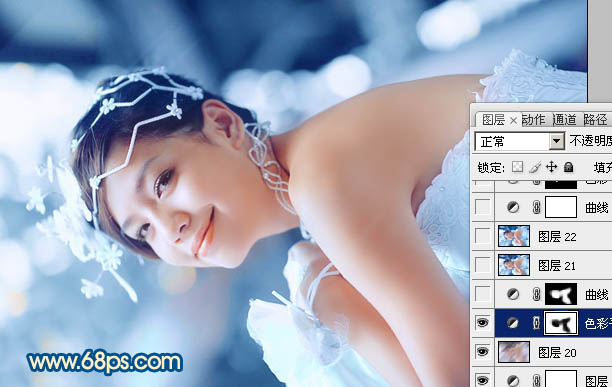 Photoshop调出偏暗外景婚片甜美的蓝红色(7)