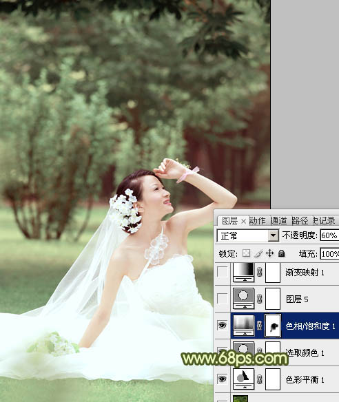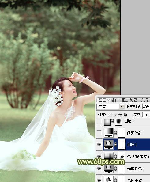 Photoshop调出外景婚片淡淡的黄绿甜美色(4)