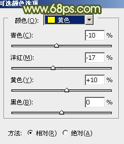 4、创建可选颜色调整图层,对红,黄进行调整,参数设置如图9,10,确定后把图层不透明度改为:30%,效果如图11。