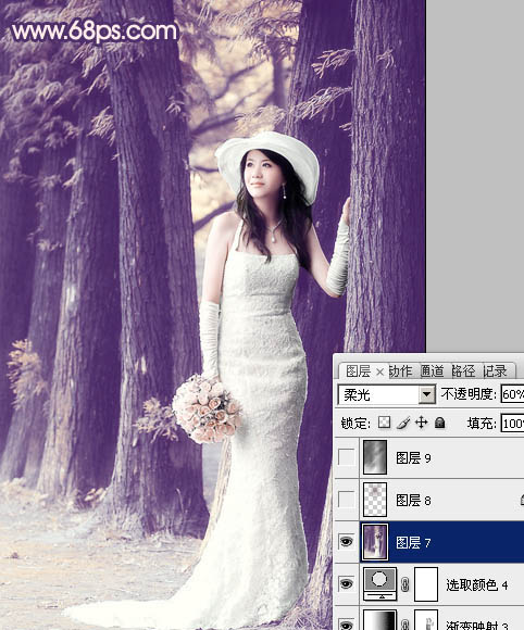 16、新建一个图层,按Ctrl + Alt + Shift + E 盖印图层。执行:滤镜 > 模糊 > 高斯模糊,数值为5,确定后把图层混合模式改为“柔光”,不透明度改为:60%,效果如下图。