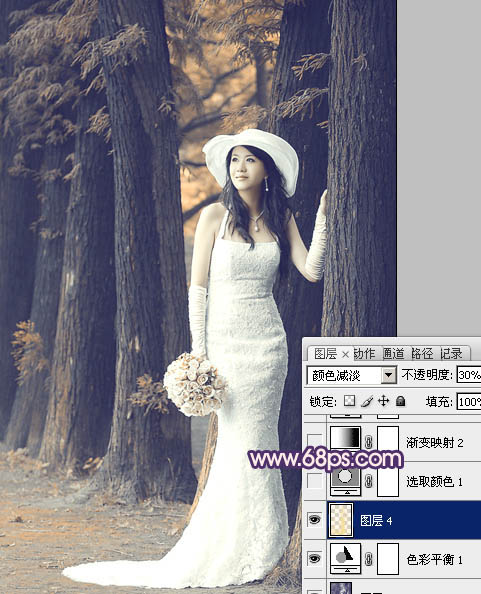 4、按Ctrl + Alt + ~ 调出高光选区,新建一个图层填充颜色:#F7DE97,图层混合模式改为“颜色减淡”,不透明度改为:30%,效果如下图。