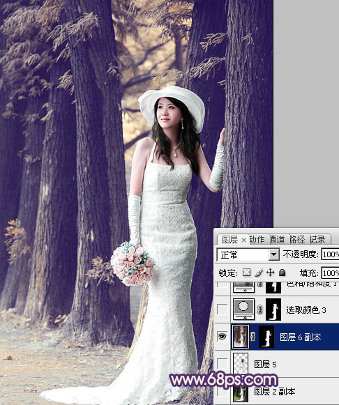 11、把背景图层复制一层,按Ctrl + Shift + ] 置顶,进入通道面板,选择绿色通道按Ctrl + A 全选,按Ctrl + C 复制。选择蓝色通道按Ctrl + V 粘贴,回到图层面板后,用钢笔工具把人物部分抠出来,复制到新的图层,再把背景副本图层隐藏,效果如下图。