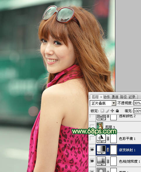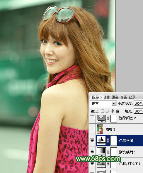 Photoshop调出外景人物图片流行的青红蜜糖色(4)