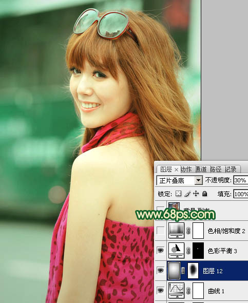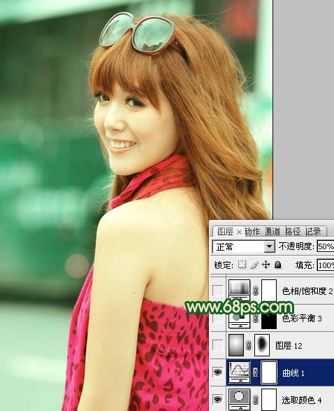 Photoshop调出外景人物图片流行的青红蜜糖色(8)