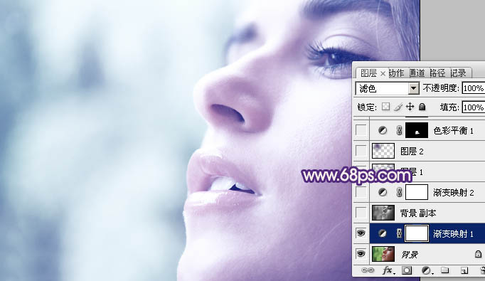 1、打开原图素材,创建渐变映射调整图层,颜色设置如图1,2,确定后把图层混合模式改为“滤色”,效果如图3。