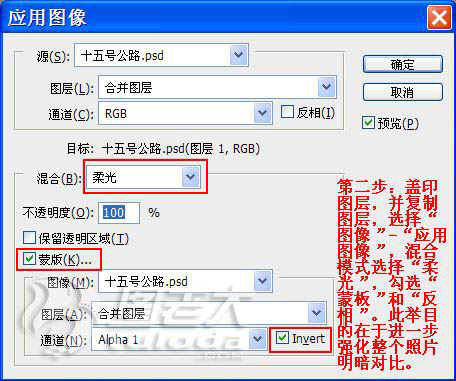 2、新建一个图层,按Ctrl + Alt + Shift + E 盖印图层,并复制图层。执行:图像 > 应用图像,参数设置如下图。这一步目的是进一步强化整个图片明暗对比。