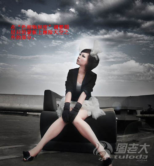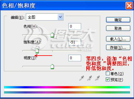 4、创建色相/饱和度调整图层,适当降低全图饱和度,参数设置如下图。确定后用把天空以外的部分擦出来。
