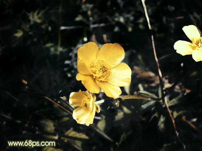 原图素材由于色彩层次不大,花朵显得有点模糊,主体不够突出。处理的时候需要把背景部分调暗,再适当加大图片的对比度和颜色,让花朵部分更突出。