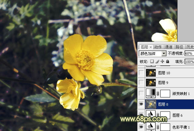 Photoshop调出花朵图片强对比的暗黄色(5)