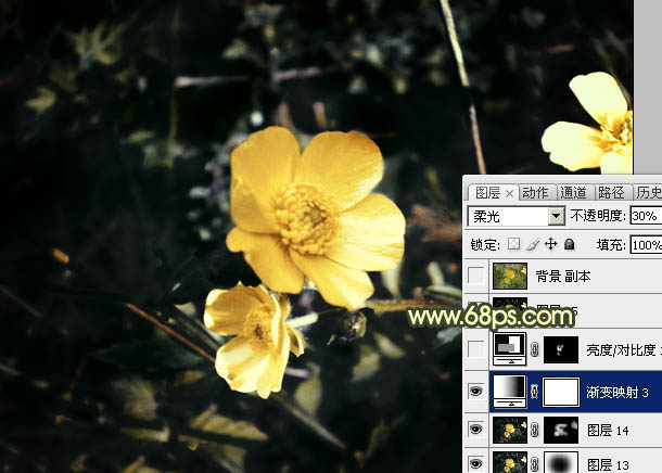 Photoshop调出花朵图片强对比的暗黄色(9)