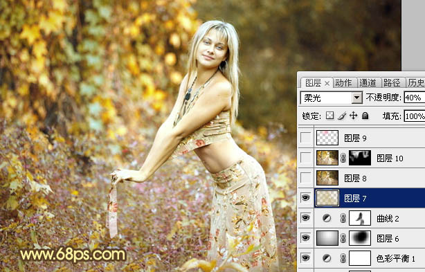 Photoshop调出外景人物图片梦幻的金秋色(10)