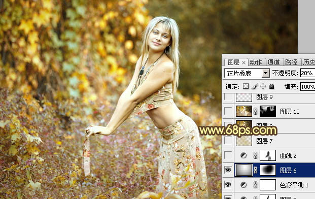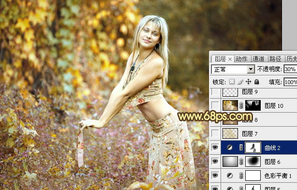 Photoshop调出外景人物图片梦幻的金秋色(9)