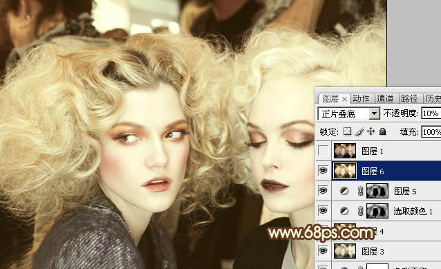 12、新建一个图层,盖印图层。图层混合模式改为“正片叠底”,不透明度改为:10%,效果如下图。