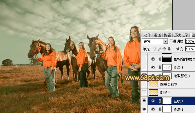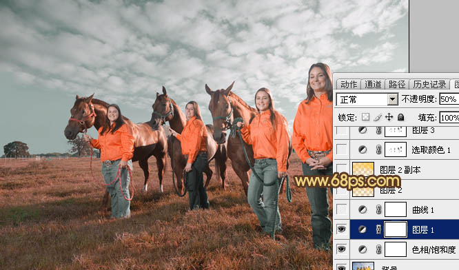 2、把当前色相/饱和度调整图层复制一层,不透明度改为:50%,效果如下图。
