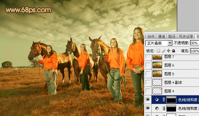 9、把当前图层复制一层,图层不透明度改为:30%,效果如下图。