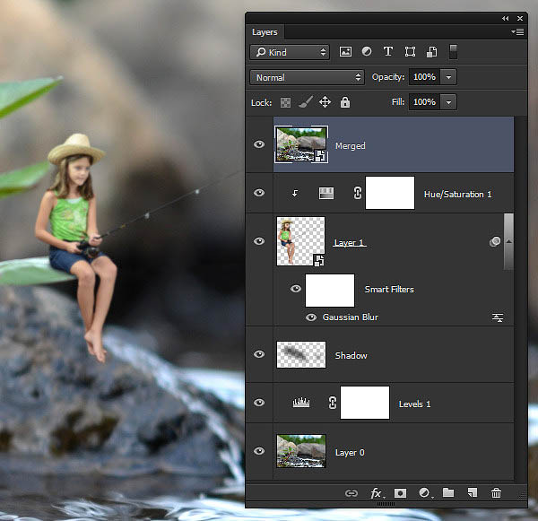 21、选择图层面板顶端的“色相/饱和度调整层”,按着Alt,在菜单栏中选择“图层>合并可见图层”,然后把合并图层变成一个智能对象。