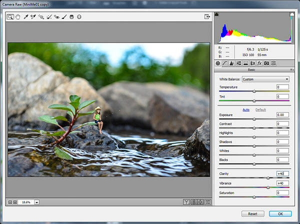 Camera Raw 滤镜”,在基础选项中设置透明度和抖动的控制值为40。
