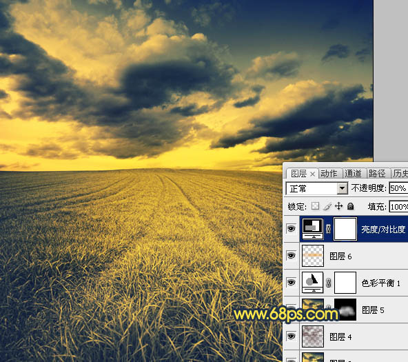 12、创建亮度/对比度调整图层,参数设置如图23,确定后适当降低图层不透明度,效果如图24。