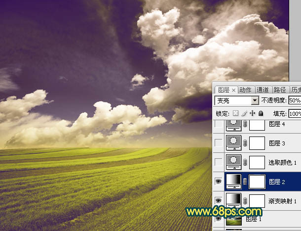 2、按Ctrl + J 把当前渐变映射调整图层复制一层,图层不透明度改为:50%,混合模式为“变亮”,效果如下图。