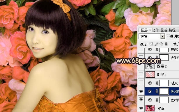 2、再创建色相/饱和度调整图层,对红色进行调整,参数设置如图3,效果如图4。