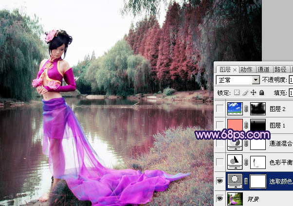 Photoshop调出外景人物图片梦幻的暗紫色(2)