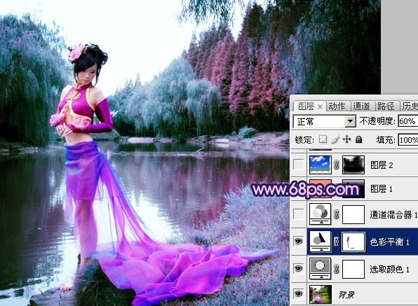 Photoshop调出外景人物图片梦幻的暗紫色(3)