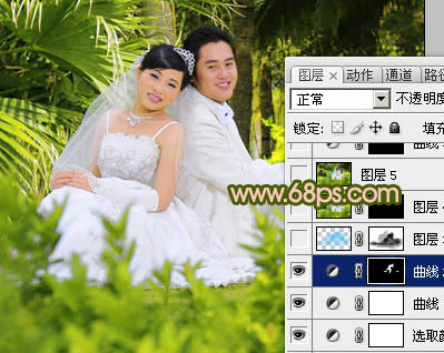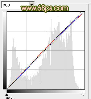 4、创建曲线调整图层,稍微调亮一点,参数设置如图9,确定后用只保留人物肤色部分,其它部分用黑色画笔擦掉,效果如图10。