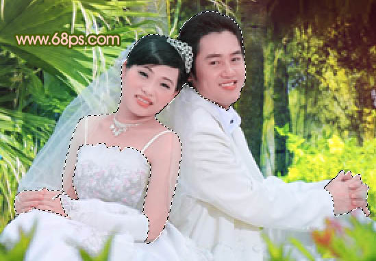 12、用钢笔工具把人物肤色部分选取出来,转为选区后按Ctrl + Shift + I 把选区反选,按Delete 删除,效果如下图。