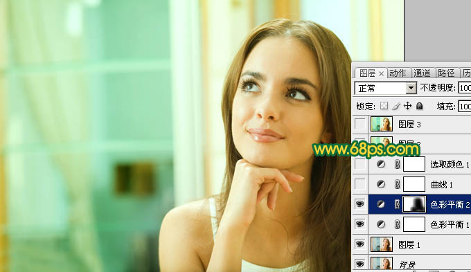 2、再创建色彩平衡调整图层,对阴影,中间调,高光进行调整,参数设置如图4 - 6,确定后用黑色画笔把人物部分擦出来,效果如图7。