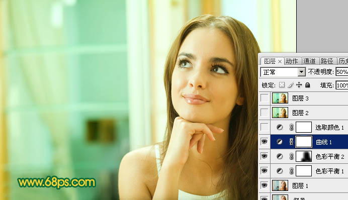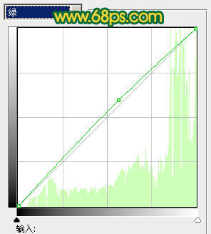 3、创建曲线调整图层,对绿色进行调整,参数设置如图8,确定后把图层不透明度改为:50%,效果如图9。