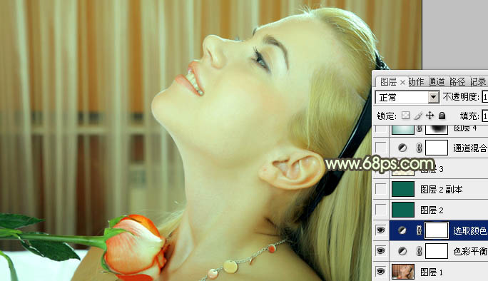 Photoshop调出人物图片清爽的粉绿色(3)