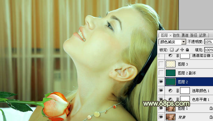 Photoshop调出人物图片清爽的粉绿色(4)