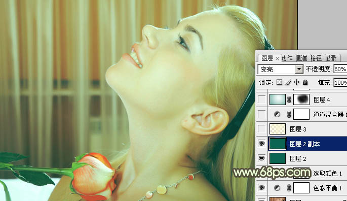 4、按Ctrl + J 把当前填色图层复制一层,图层混合模式改为“变亮”,不透明度改为:60%,效果如下图。
