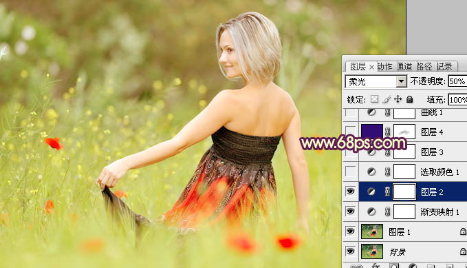 Photoshop调出外景人物图片甜美的紫黄色(3)