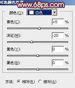 4、创建可选颜色调整图层,对红,黄,绿,白,中性色进行调整,参数设置如图5 - 9,效果如图10。