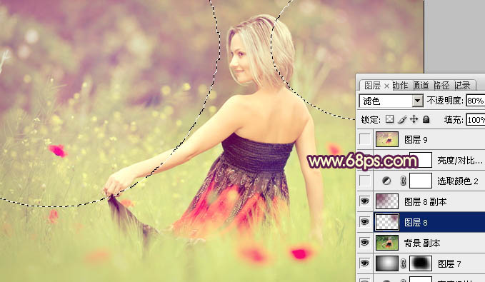 Photoshop调出外景人物图片甜美的紫黄色(7)