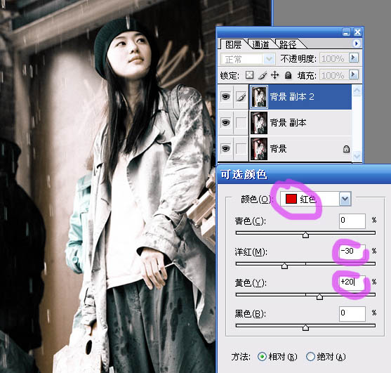 3、执行:图像 > 调整 > 可选颜色,对红色进行调整,参数及效果如下图。
