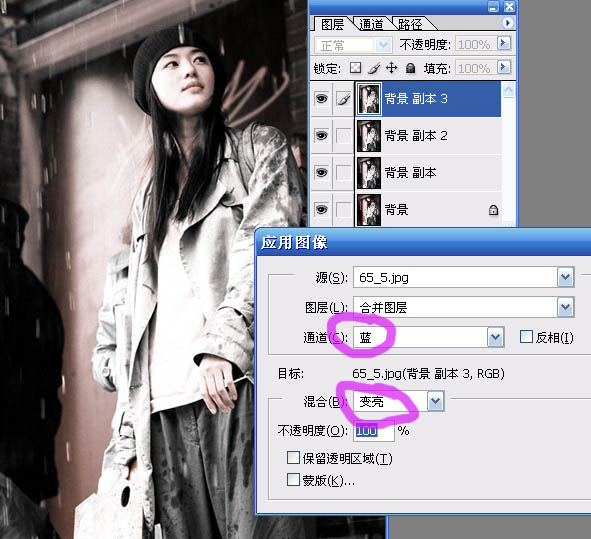 4、执行:图像 > 应用图像,参数及效果如下图。