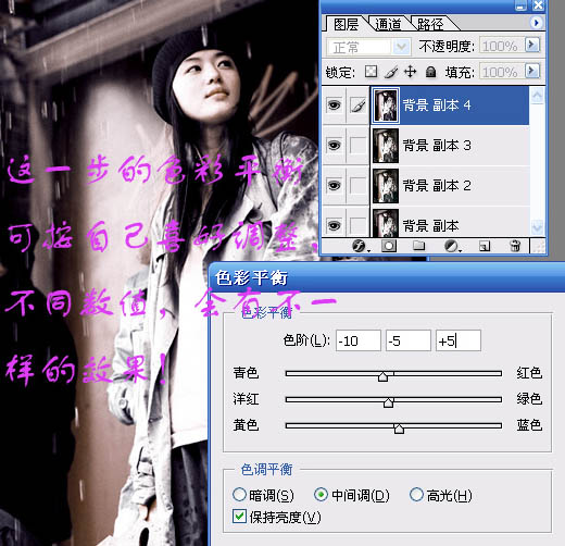 6、按Ctrl + B 调整色彩平衡,对中间调调整进行调整,参数设置如下图。