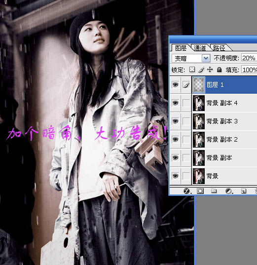 7、新建一个图层,给图片加上暗角,完成最终效果。