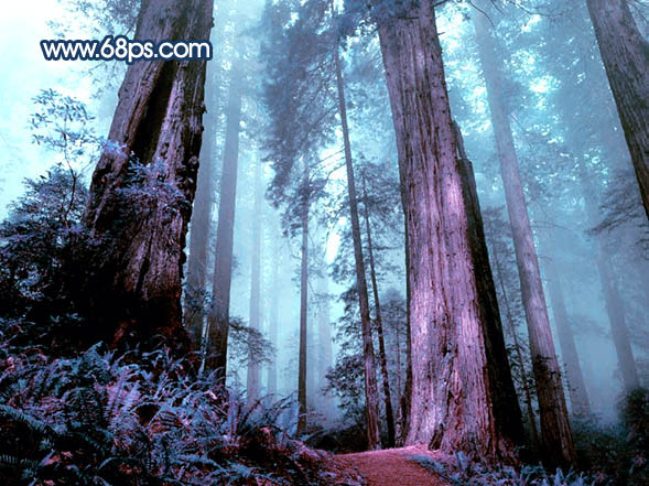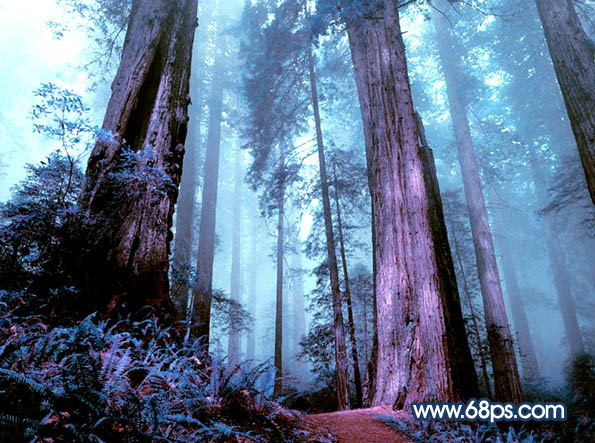 Photoshop打造暗调蓝紫色的森林图片(7)