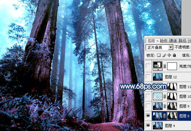 Photoshop打造暗调蓝紫色的森林图片(8)